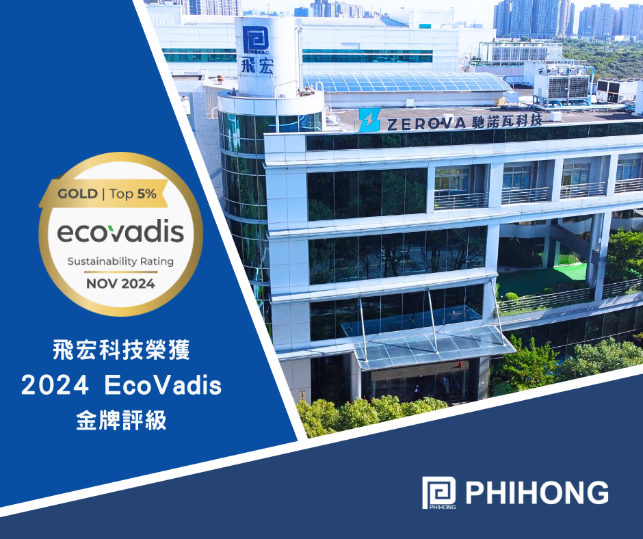 飛宏首次榮獲國際知名的EcoVadis 金牌評級!這項殊榮象徵飛宏科技在企業社會責任及ESG永續發展領域的卓越表現,並成為全球前5%的企業之一,獲得來自國際市場的高度肯定。
